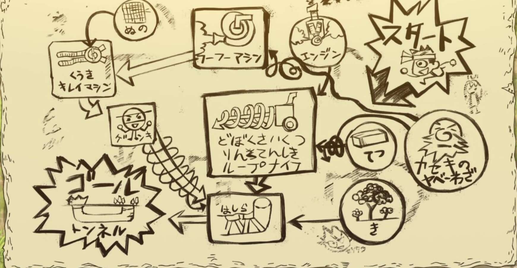 クロムは皆の力を借りながら、ゼノ城まで掘る地下トンネルの距離を計算します。そして、潜入用の地下トンネルをクラフトする為の、オリジナルロードマップを完成させます。『フーフーマシン』とか、『くうきキレイマシン』とか、『カセキのヤベーわざ』とか、かなり大雑把なロードマップですが、一応完成させています。