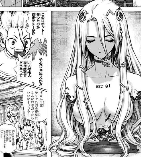千空がまだ10歳の頃、父親の百夜は非常勤の大学に千空を連れて行きます。自分が宇宙飛行士に選ばれたお礼として、自分が作ったとっておきのロボットを見せます。最初に見せた人間の女性そっくりのロボットに千空は感動しますが、実際はタダの模型で百夜のこんなロボットだったらいいなという願望でした。本当のロボットは見た目がいかにもなロボでしたが、それでも千空は、唆るじゃねえか!!と興奮します。