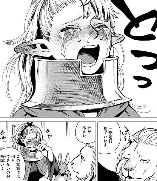 そんな話をしていると、ライオス達はマルシルの治療のおかげで生き返ります。マルシルが魔術で強制的に兎に同じ動きをさせていると知ると、魔物大好きなライオスは兎が踊っているところが見たいと言います。いつものようにライオスに怒るマルシルですが、先ほどの有翼の獅子との会話から、昔の体験を思い出したのか、マルシルは泣き出してしまいます。