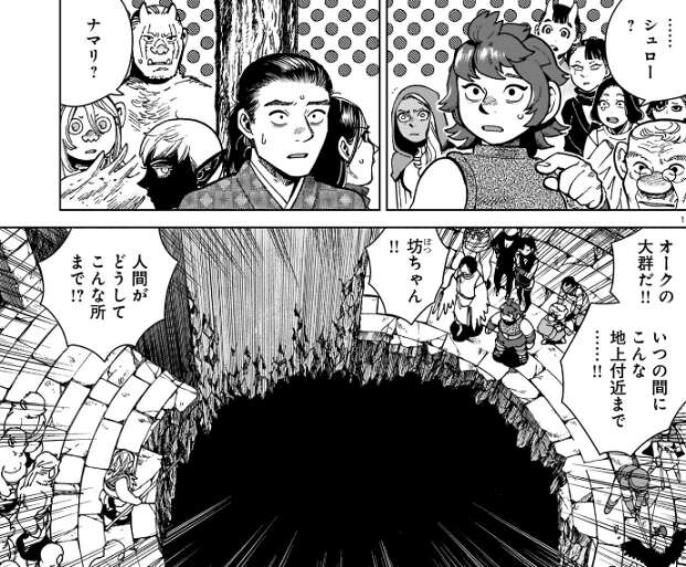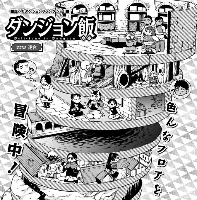 前回、最下層のライオスやカナリア隊の様子が描かれていましたが、今回は迷宮の地形が変わった時の、他の階層の様子です。