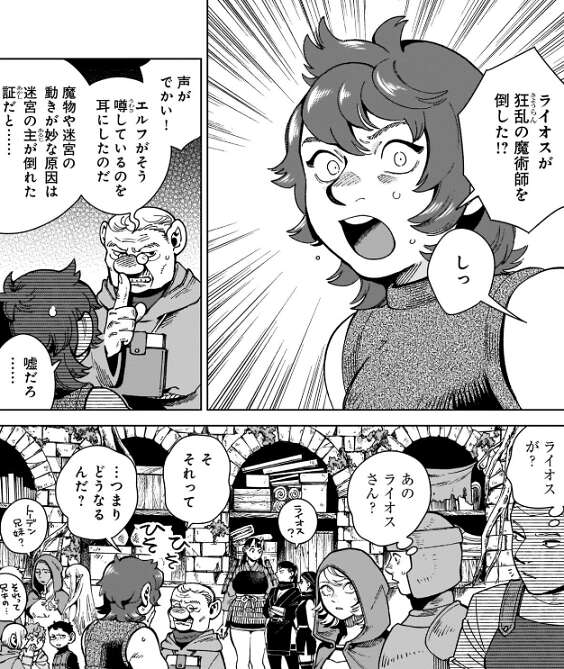 一方、第1階層にいるタンスですが、ライオスが狂乱の魔術師を倒した、とエルフが噂しているという事をナマリに伝えます。ナマリはライオスが狂乱の魔術師を倒したと聞き驚きますが、さらにタンスからライオスが新たな迷宮の主になってしまう可能性を聞きます。ライオスは迷宮の主に興味はない、と笑い飛ばしますが、タンスから他の仲間はどうだ?と、聞かれ、ナマリは返事に困ってしまいます。