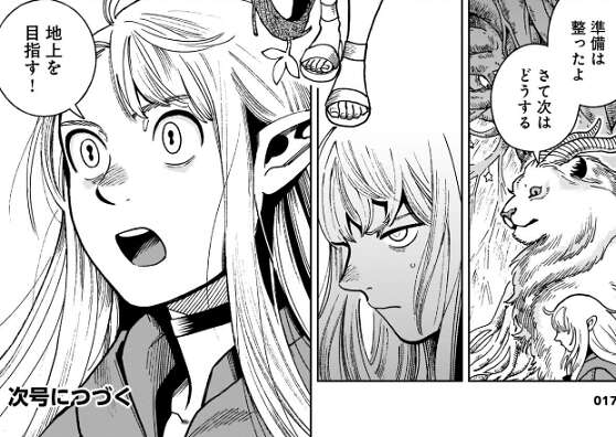 準備は整ったよ、という翼獅子に、地上を目指す!と、マルシルは答えます。