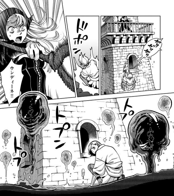 さらにマルシルはウンディーネに命令し、ウンディーネの水を使ってミスルンを攻撃します。いくつものウンディーネの水に攻撃されて、ミスルンは足を負傷してしまいます。