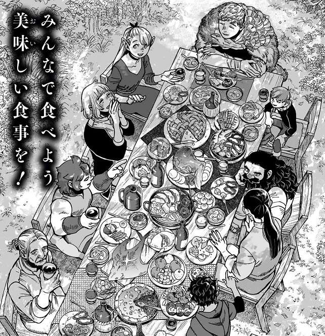 王国の子供が、なぜそこまで食料にこだわるのか、尋ねたところライオスは、食は生の特権だ、生きる為には生き続けなくてはならない、と子供に答えたそうです。そして、ライオスは子供達を食事に誘ったところで、ダンジョン飯の物語は終わりです。