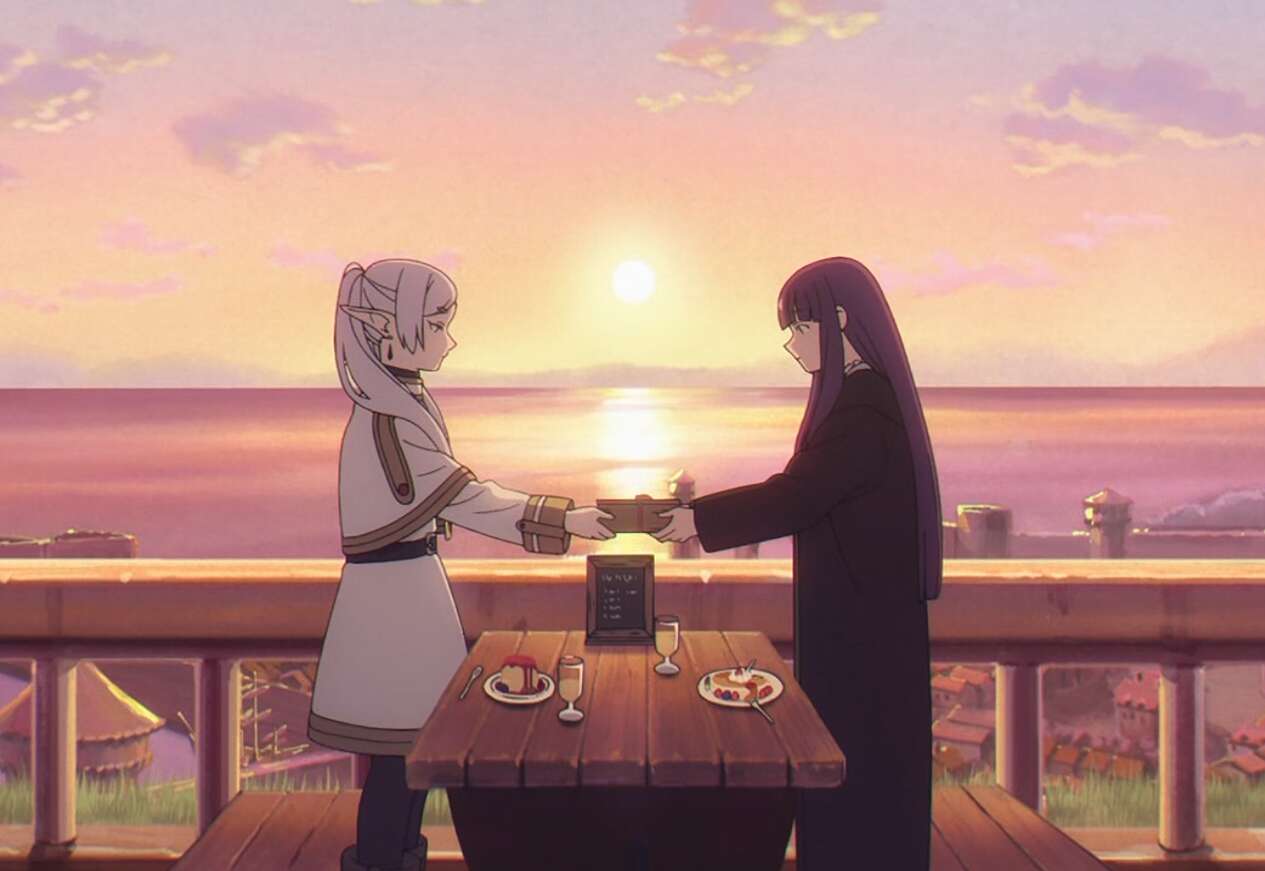 魔王を倒し王都へ凱旋した勇者ヒンメル一行は、王都で民衆から熱烈な歓迎を受けます。王様に魔王を倒したことを報告した後、四人は今までの冒険を振り返りながら50年に一度の流星群、エーラ流星を眺めます。その時、フリーレンはエーラ流星がもっと綺麗に見える場所を知っているから案内するよ、と言い50年後に再び流星群を見よう、と皆で約束をします。