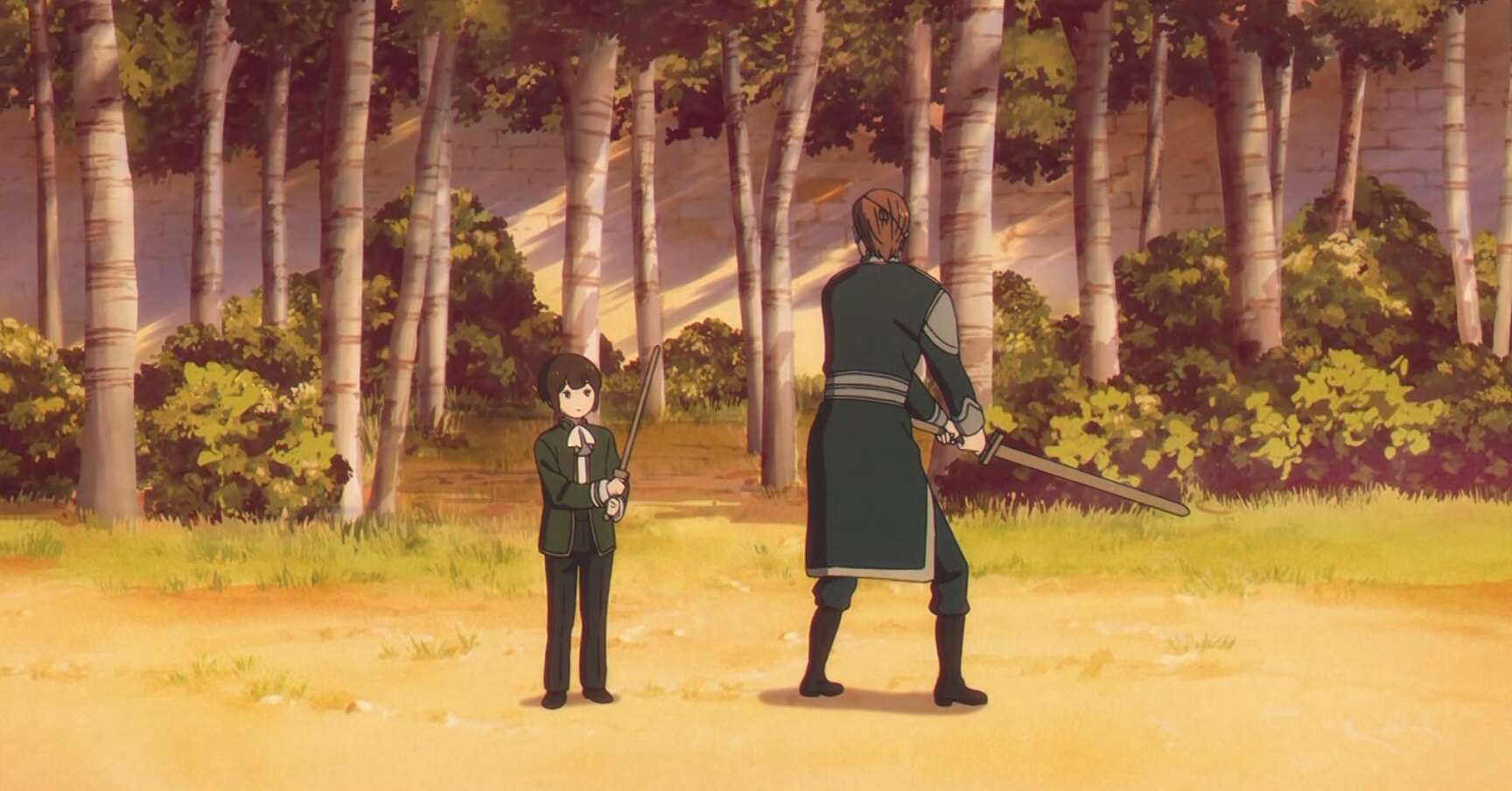 練習の途中、オルデン卿には次男のムートがいる事をシュタルクは聞きますが、ムートには兄ほどの才がないそうで、シュタルクは自分の境遇と重ねて複雑な気持ちになります。しかしムートは努力家だそうで、積み上げてきたものは決して裏切らない、いつか私より強い騎士になる、とオルデン卿は言い、シュタルクはその事はムートに言った方がいいと言います。オルデン卿は、いつも言っているが、だから調子に乗ってなかなか上達しないと言います。それを聞いたシュタルクは、それは大問題だ、と答えます。