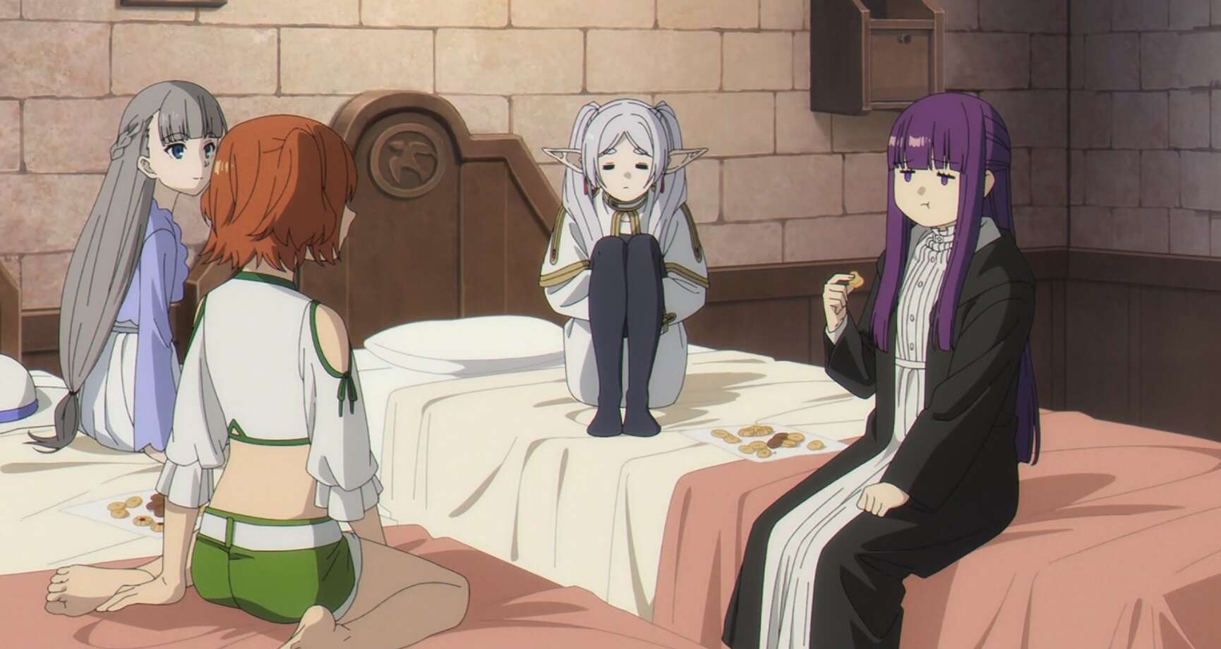まだ一級魔法使い試験は続いていると思っていたシュタルクは、1人で夕方までだらだら過ごしていました。すると、突然シュタルクの部屋にフェルンとフリーレンが訪ねてきます。そして夕方まで寝ていた事、夜更かししていた事、ジュースを飲んでいた事をフェルンに責められます。さらに、フリーレンもさっき起きたばかりだとフェルンに怒られ、フェルンの機嫌が悪くなってしまいます。フリーレンはフェルンのご機嫌取りをする為、昔ヒンメル達と行ったいいお店でフェルンに食事をおごる事にします。