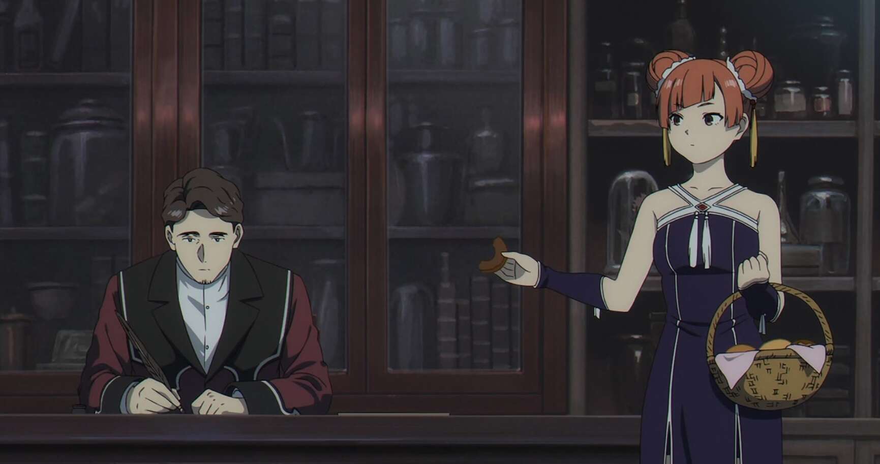 続いて、店番をしているリヒターの所にデンケンとラオフェンが訪ねてきます。リヒターもラヴィーネと同様、第二次試験で不合格となっており、デンケンとラオフェンはリヒターを慰めに来ていました。デンケンは、次の一級魔法使い試験がある三年後にはリヒターは今よりずっと強くなっている、と励ますと、店を後にします。
