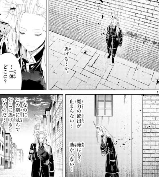 マハトは逃げながらも、…一体どこに?と、自身に問いかけます。マハトの魔力の流出は止まらず、俺はもう助からない…、とマハトは自分が助からない事を察します。なのにこの期に及んでどこに逃げるというのだ…、と自問自答します。