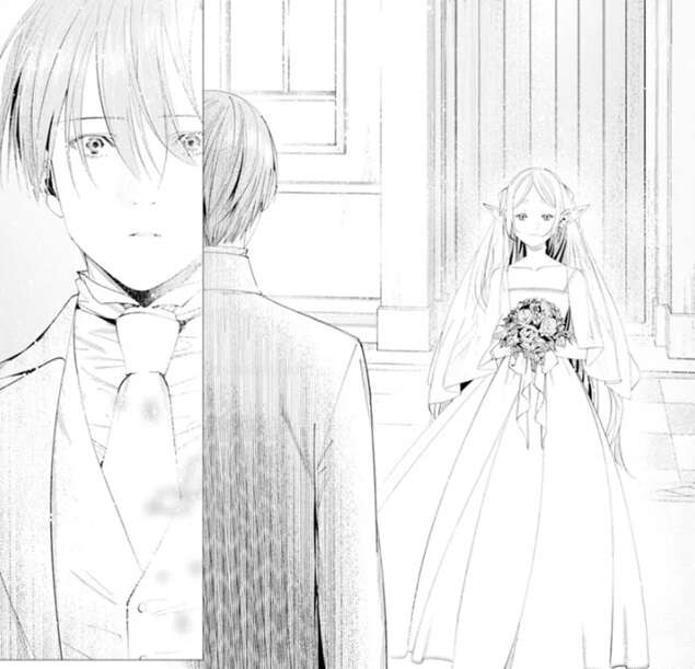 その先には花嫁姿のフリーレンがおり、ヒンメルはその状況に驚きます。これはグラオザームの楽園へと導く魔法(アンシレーシエラ)が見せる幻影で、グラオザームの魔法は決して叶わないと諦めた、幸せな夢でさえ実現できるようです。このままグラオザームの魔法にはまってしまうと、安らかに眠ってしまい、おそらく死んでしまうのだと思われますが、脱出する方法はあるのでしょうか?