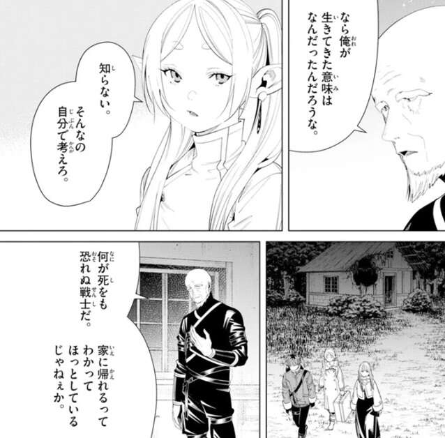 ラダールは、なら俺が生きてきた意味はなんだったんだろうな、と言うと、知らない、そんなの自分で考えろ、とフリーレンは言い、そのままフリーレン達は村を旅立ちます。フリーレンに見逃されたラダールは、何が死をも恐れぬ戦士だ、家に帰れるってわかってほっとしているじゃねぇか、とつぶやきます。