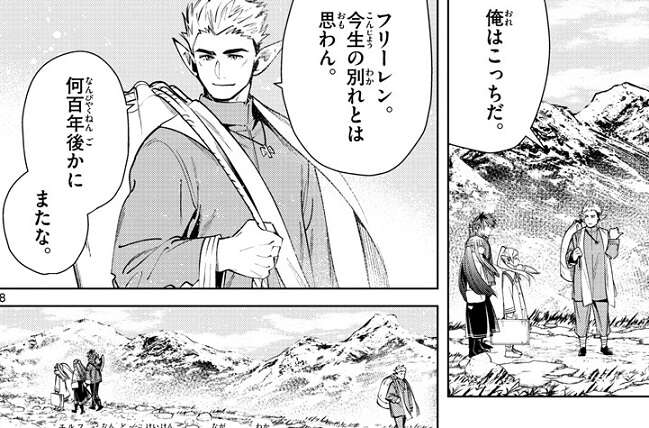 なら、いずれ会えるな、とクラフト言うと、フリーレンは、そうだね、と答えます。雪が解けた山を進みクラフトは、フリーレン、今生の別れとは思わん、何百年後かにまたな、と言って、フリーレン達とは別の方向に旅立っていきます。