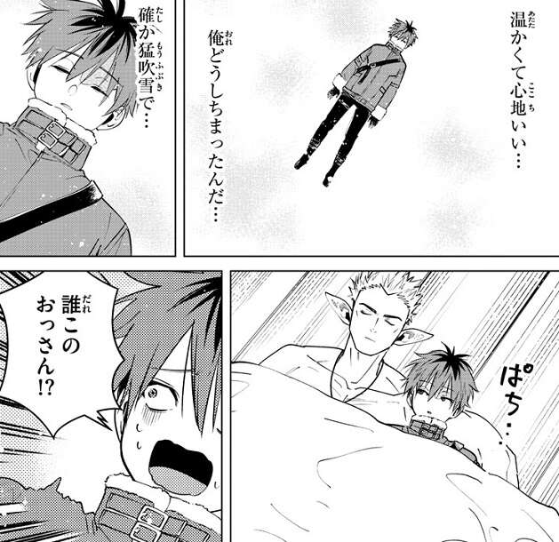 シュヴェア山脈に入る前に、吹雪に見舞われ遭難してしまいます。避難小屋を見つけますが、中には変態がいてフェルンは警戒しますが、実はエルフで女神を信じるモンクでした。しかし、フリーレンといい、このモンクといい、エルフは変わり者が多いようです。