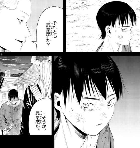 少年が魔族には理解できない感情を抱いているとマハトは知ると、それが“悪意”なのか、それとも“罪悪感”なのかを少年に尋ねます。少年は無言でマハトを睨むと、…そうか、罪悪感か、とマハトは嬉しそうに言います。少年がナイフをマハトに向けて殺そうとしますが、マハトはあっさりと少年を武器で殺してしまいます。そして、名前も知らない少年にありがとう、と礼を言うと、何も知らない奴が何百人死のうが何も感じないのは当然だ、と歩きながらつぶやきます。