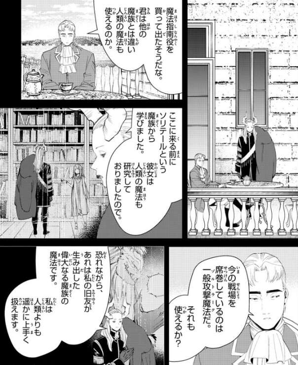 前回、マハトはグリュックに仕えるようになりましたが、マハトは順調にヴァイゼの貴族達の信頼を勝ち取っていきます。そして、魔王が勇者ヒンメルに討たれた後、生き残ったいる魔王軍の残存勢力を討伐することで、ヴァイゼの民からの信頼も勝ち取ります。さらにマハトはグリュック家の魔法指南役も買って出ますが、まだ子供のデンケンに魔法を教えるようにグリュックから命令されます。両親を魔族に殺されたデンケンは、マハトを信頼せず冷たい態度をとりますが、この後どういう展開となるでしょうか?