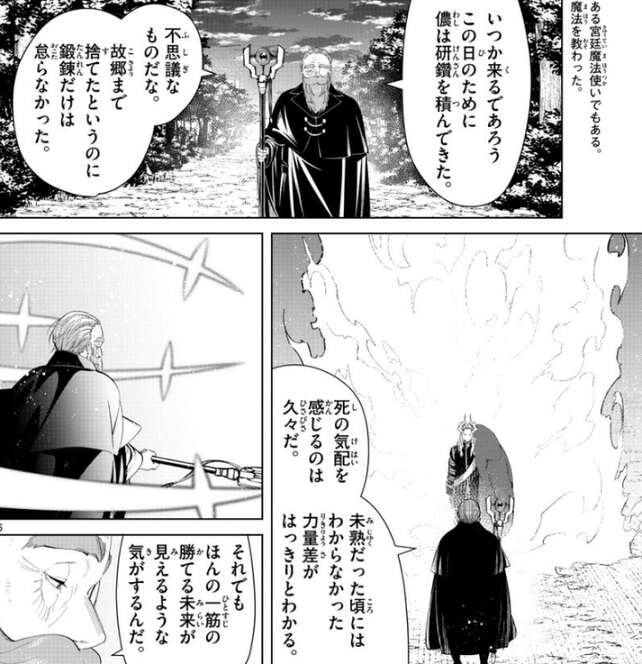 前回、ソリテールとフェルン、シュタルクとの戦闘でしたが、今回はマハトとデンケンの戦闘がメインです。