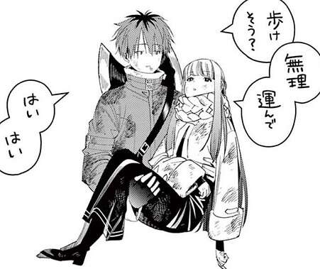 第102話でフェルンは、魔力探知範囲外からソリテールを長距離射撃で撃ち抜き、仕留めますがその後、魔力切れで落下してしまいます。魔力切れなので仕方ないですが、シュタルクに甘えて、運んで、と甘えています。7巻で一度はデートをしていますが、この二人の仲はいつになったら進展するんでしょうか?