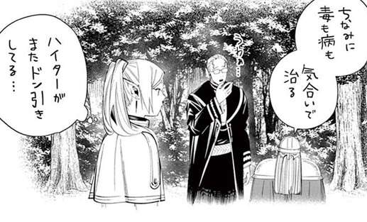 第112話でハイターに、どうしてそんなに頑丈なんですか?と、聞かれてアイゼンは、気合、と答えていましたが、アイゼンは毒も病も気合で治ると断言しています。それを聞いて、ハイターがまたアイゼンにドン引きします。