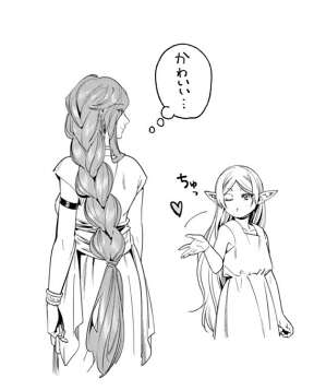 第28話でザインにやってみせた投げキッスですが、師匠にやってみせている時の場面です。師匠といい、ヒンメルといいエッチの基準が少しおかしいようです。