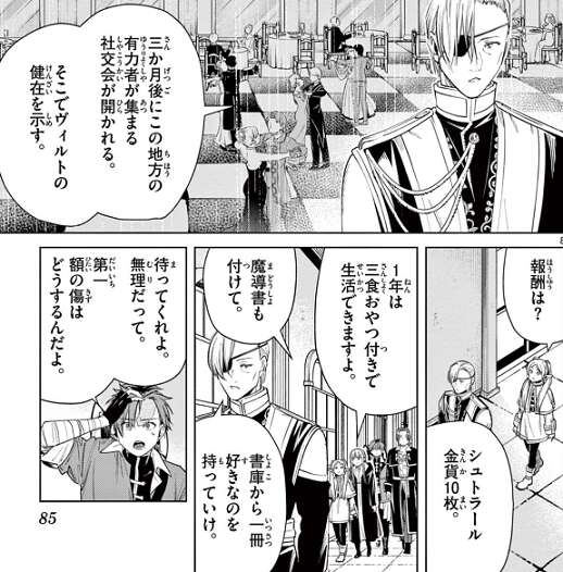 勇者ヒンメルの死から29年後、北側諸国、要塞都市フォーリヒにたどり着きますが、そこで貴族のオルデン家の人間に、強引に貴族の屋敷まで連れてこられます。オルデン家の主人、オルデン卿からシュタルクに依頼あると言われ、死んだオルデン卿の長男・ヴィルドの振りをして欲しいと言われます。そして、ヴィルドの振りをして社交界に出席にし、ヴィルドの健在を示したいと言われます。