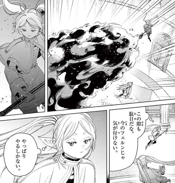フリーレンの複製体を倒すための作戦を立てたフリーレン達ですが、全員で戦った場合大半が死んでしまう可能性が高いと判断し、フリーレンの複製体と戦うのはフリーレンとフェルンの二人のみとします。他のメンバーは複製体に挟み撃ちされないように、フリーレンの複製体以外の足止めに専念します。