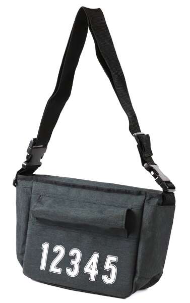 シンプルなメッセンジャーバッグです。表と裏に、五つ子たちを表す1,2,3,4,5の数字入です。小さいですが表の数字は、手帳型スマートフォンケースと同じくイメージカラー入りに見えます。
