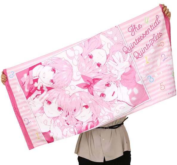 五つ子が集合している漫画コマを使用した、ビックタオルです。このビッグタオルが4,500円と高価ですが、サイズも 約120cm×60cm と結構大きいです。