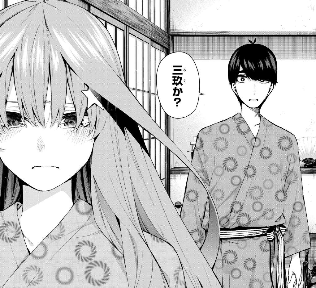 修学旅行の回です。修学旅行最終日、映画村で三玖とデートです。