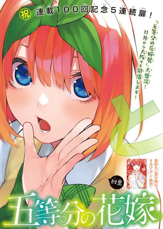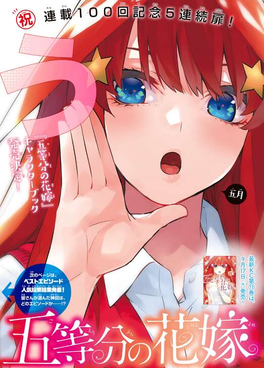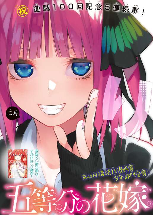 週刊少年マガジン 2019年40号に掲載されている五等分の花嫁 100話のネタバレ、感想です。