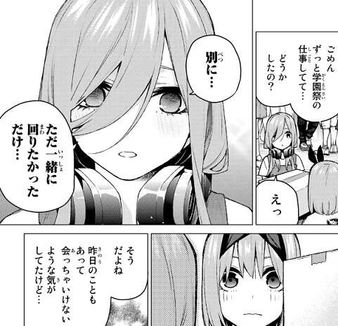 この選択は正しかったのか、そんなことを考えるには三日間はあまりに短すぎた、そんなことを風太郎は思いながら、学園祭を振り返ります。
