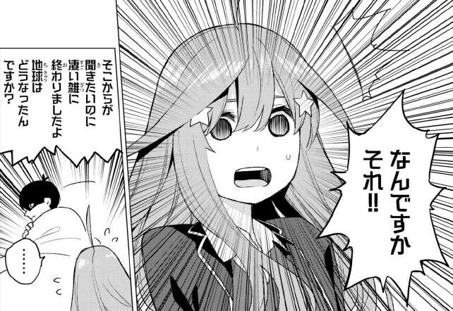 当然、風太郎の作り話で五月は抗議します。「地球はどうなったんですか?」そこですか?