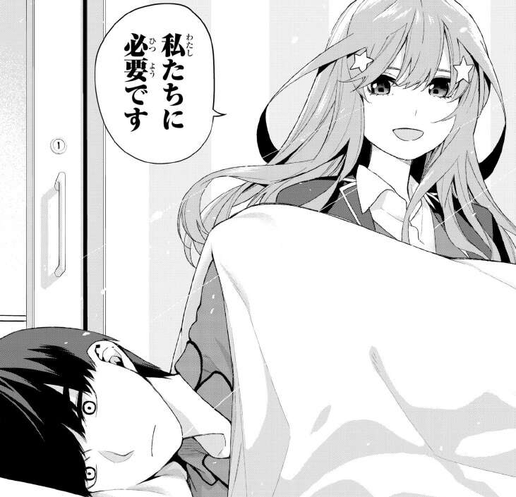 週刊少年マガジン 2018年20月号に掲載されている五等分の花嫁 34話のネタバレ、感想です。今話のタイトル、ちょっとすごいですね。