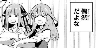 今回風太郎の回想の話の流れと、五月との会話で写真の女の子は五月で確定かと思いましたが、買ったか、貰ったか覚えていませんでした。別の姉妹の可能性は残っているため、まだ分かりませんね。しかしやっと風太郎も、五つ子の誰かが写真の女の子だと気づいたと思います。ただし最後で偶然だよなと言っているので、スルーする可能性もあります。