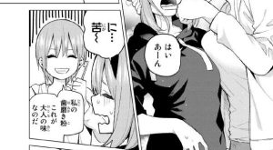 お菓子作りに失敗してしまいました。動揺する二乃をフォローする風太郎ですが、二乃としては嬉しかったようです。