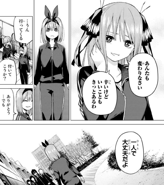 この後、二乃に促されて四葉は自分自身で陸上部の部員達に、一人で自分の本音を話に行きます。さらに今後の期末試験の対策に関しても、風太郎にはとっておきの秘策があるようで試験の心配はとりあえず大丈夫のようです。