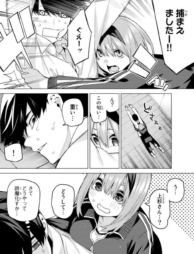 一方、風太郎は四葉にタックルされてあえなく捕まってしまいます。
