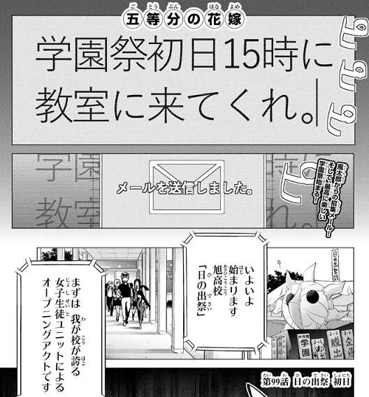 【ネタバレ】五等分の花嫁 99話 『日の出祭 初日』のネタバレ、感想