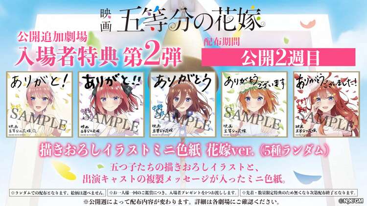 映画「五等分の花嫁」公開追加劇場での入場者特典の再配布決定