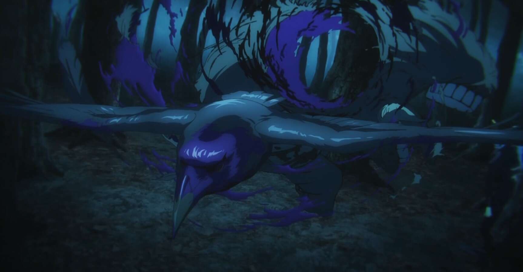 疱瘡神が自分の攻撃が無効化されて戸惑っている間に、冥冥が疱瘡神を攻撃、さらに術式「黒鳥操術」、バードストライクで疱瘡神に止めを刺します。バードストライクは烏に自死を強制し、その代価として烏の呪力制限を消し去り相手に体当たりさせるもので、五条悟を除いてバードストライクを防げた人間ははいないほど強力な技です。冥冥と憂憂は偽夏油と対峙、偽夏油との戦闘が始まります。