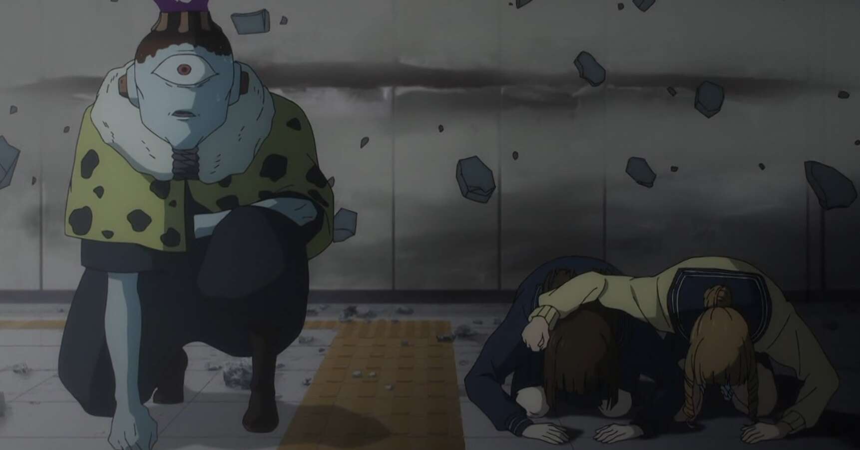 漏瑚はあっという間に七海、真希、直毘人に重傷を負わせ、止めを刺そうとします。しかしその時、漏瑚は宿儺の指が解放された気配を感じ、直毘人を放って気配がした場所へと駆けつけます。そこには虎杖に宿儺の指を喰わせている呪詛師の菜々子と美々子がいました。