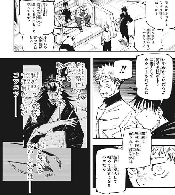 前回、秤は“熱”に嘘はつけない、と虎杖達に協力する事にしますが、改めて五条が封印された事を虎杖達から説明されて驚きます。さらに夜蛾学長が死んだ事もパンダから知らされて、秤だけでなく虎杖と伏黒も驚きます。