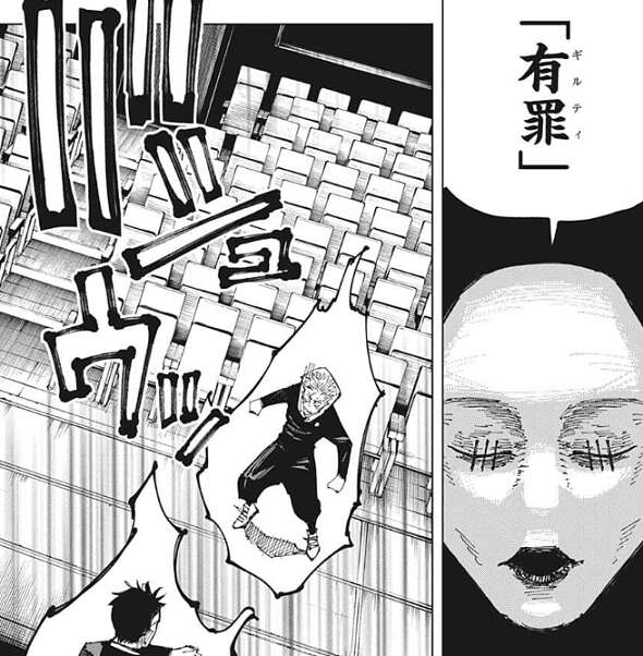 すると、ジャッジマンは「有罪(ギルティ)」「没収(コンフィスケイション)」を宣言します。その瞬間、虎杖と日車は通常の空間へと戻ってきます。