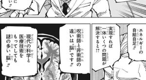 そして、伏黒は“堕天”が宿儺、つまり天使の標的が虎杖だという事を理解します。一方、伏黒にジェスチャーで伝わったと分かった虎杖は、どうして宿儺がわざわざ自分に口止めしたか、理由を考えます。そして、きっと天使に復活の余地なく完全に宿儺を殺すだけの能力があるからだ、と虎杖は推測します。