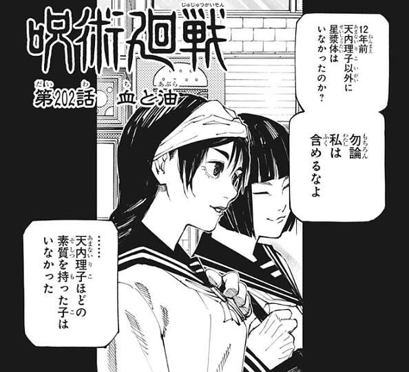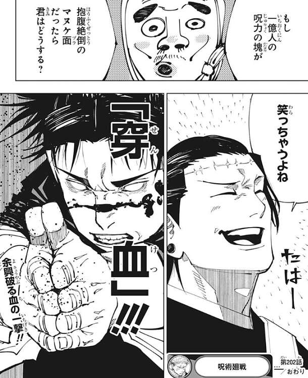 […] 【ネタバレ】呪術廻戦 第202話「血と油」あらすじ、ネタバレ […]