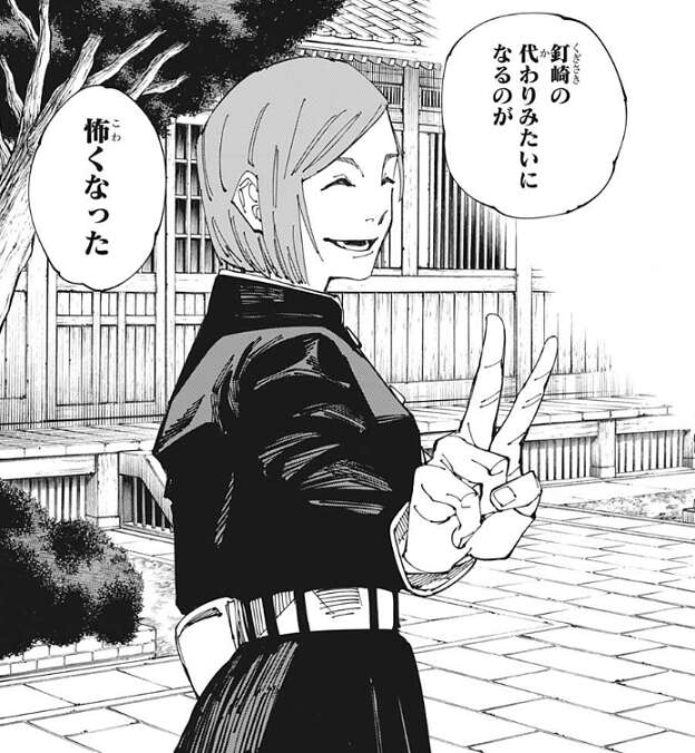 あと釘崎のカットが挿入され、釘崎の事が久々に本編で出てきました。釘崎が生きていて、これを機にまた本編で登場し活躍してくれればな、と思います。