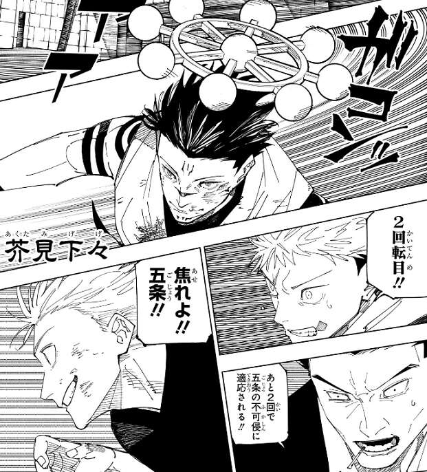 次回、不可侵に適応された五条、さらに呪力出力も落ちてきていて、敗北の可能性が脳裏を駆け巡ります。