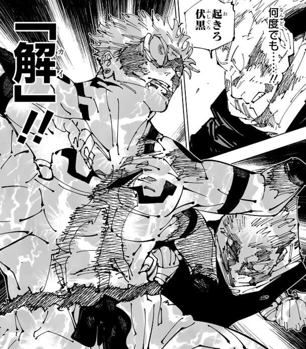 それでも、喰らわなければどうということはない……、と宿儺は判断し、虎杖がさらに繰り出す「御廚子」の斬撃や「解」をかわして、逆に虎杖に打撃を入れます。