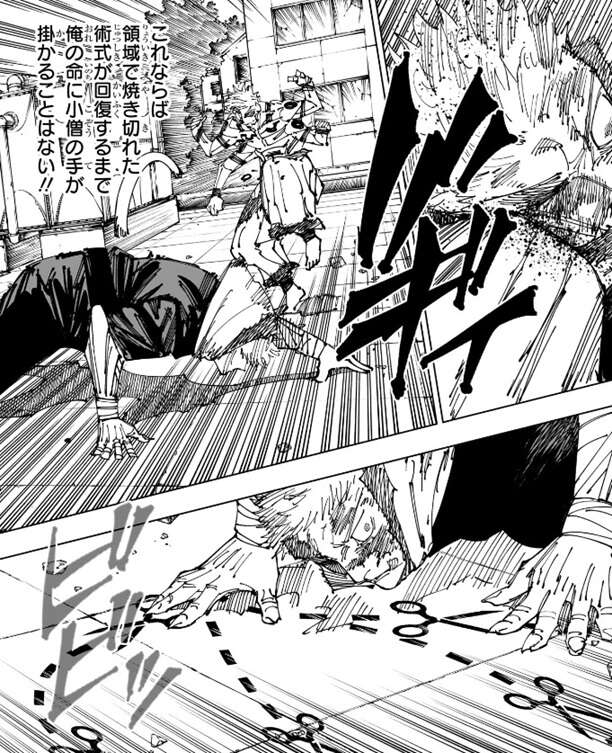 これなら領域で焼き切れた術式が回復するまで、俺の命に小僧の手が掛かることはない!!と、宿儺は考えます。