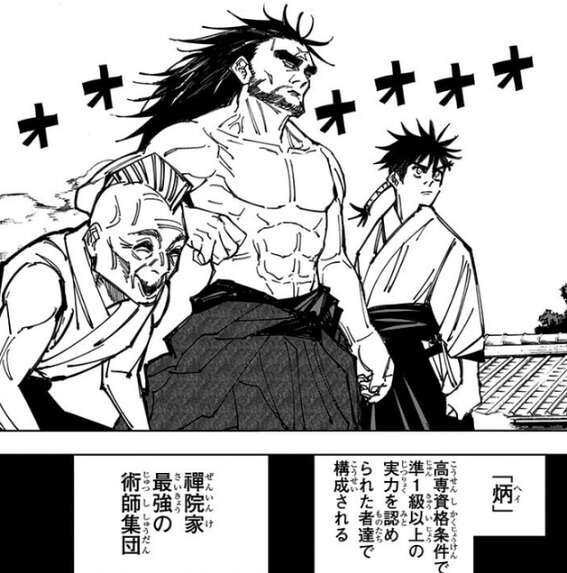 扇を殺した真希を処理すべく、禪院家の躯倶留隊が出動しますが、真希は躯倶留隊の隊長・禪院信朗以外を難なく殺害します。乱心した真希を何としても処理しようと躯倶留隊に続き、禪院家最強の呪術集団「炳」を出動し、「炳」の長寿郎、甚壱、蘭太も真希を殺そうとしますが、真希に返り討ちに遭ってしまいます。