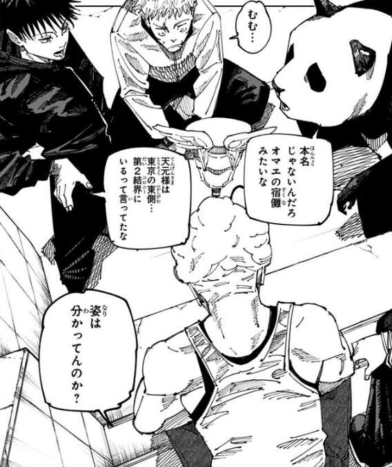 寝ている佐々木の夢の中に羂索が現れ、死滅回游が始まったことを佐々木に説明します。そして、結界の外に出る権利があることを説明し、佐々木を結界の外に案内します。一方、虎杖達はあらゆる術式を消滅させることが出来る天使を探すため、東京結界に潜入する準備をします。虎杖と伏黒は東京第1結界に、秤金次とパンダが東京第2結界に潜入し天使探しを行うことにします。